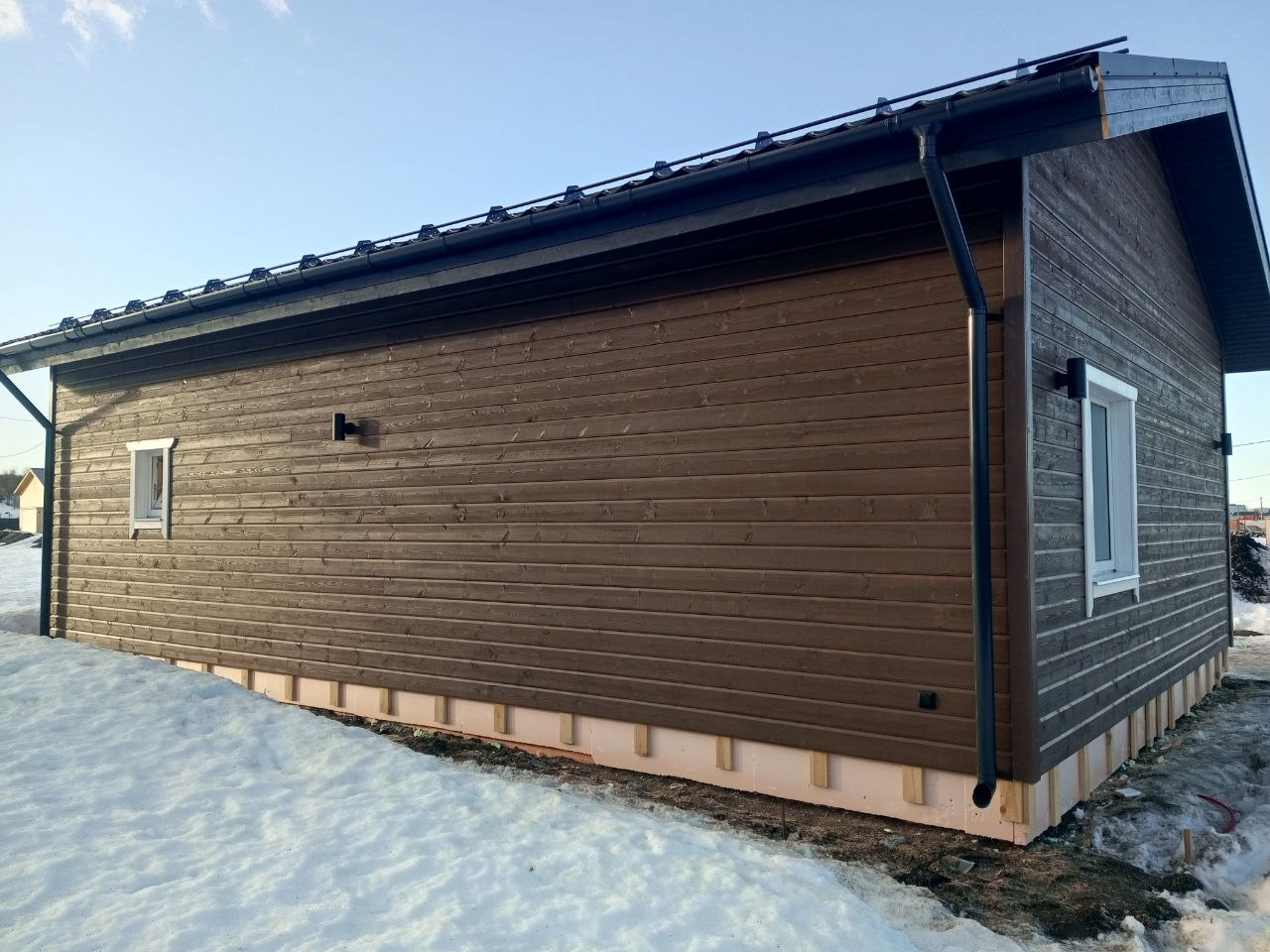 Монолитная бетонная лента под несущими стенами здания. Подходит для различных типов домов и может применяться на участках с перепадами высот. Один из наиболее распространённых вариантов в частном строительстве.